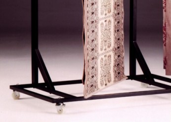 Système mural avec bras sur rail, spécialement conçu pour exposer couvertures, couettes, édredons et textiles volumineux. Ce système mural optimise l’espace vertical sans compromettre la visibilité ni l’accessibilité.