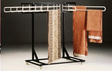 Vitrine spécialement conçue pour exposer des tissus délicats tels que des kilims, des plaids, des couvertures ou des serviettes sans les abîmer. Il utilise un système de double barre de suspension qui permet à l’échantillon d’être doucement suspendu par son propre poids.