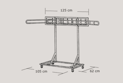 Sa conception évite l’utilisation d’attaches ou de pinces, protégeant ainsi les fibres textiles. Disponible en version mobile de 140 cm de hauteur (modèle C-36) ou en format mural (modèle M-36).
