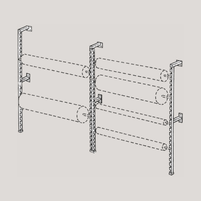 Toute la série Zipper est construite avec le même profil avec des évidements tous les 75 mm pour des barres de Ø 25 mm qui soutiennent la pièce à l’intérieur et reposent sur la fermeture éclair à ses extrémités.